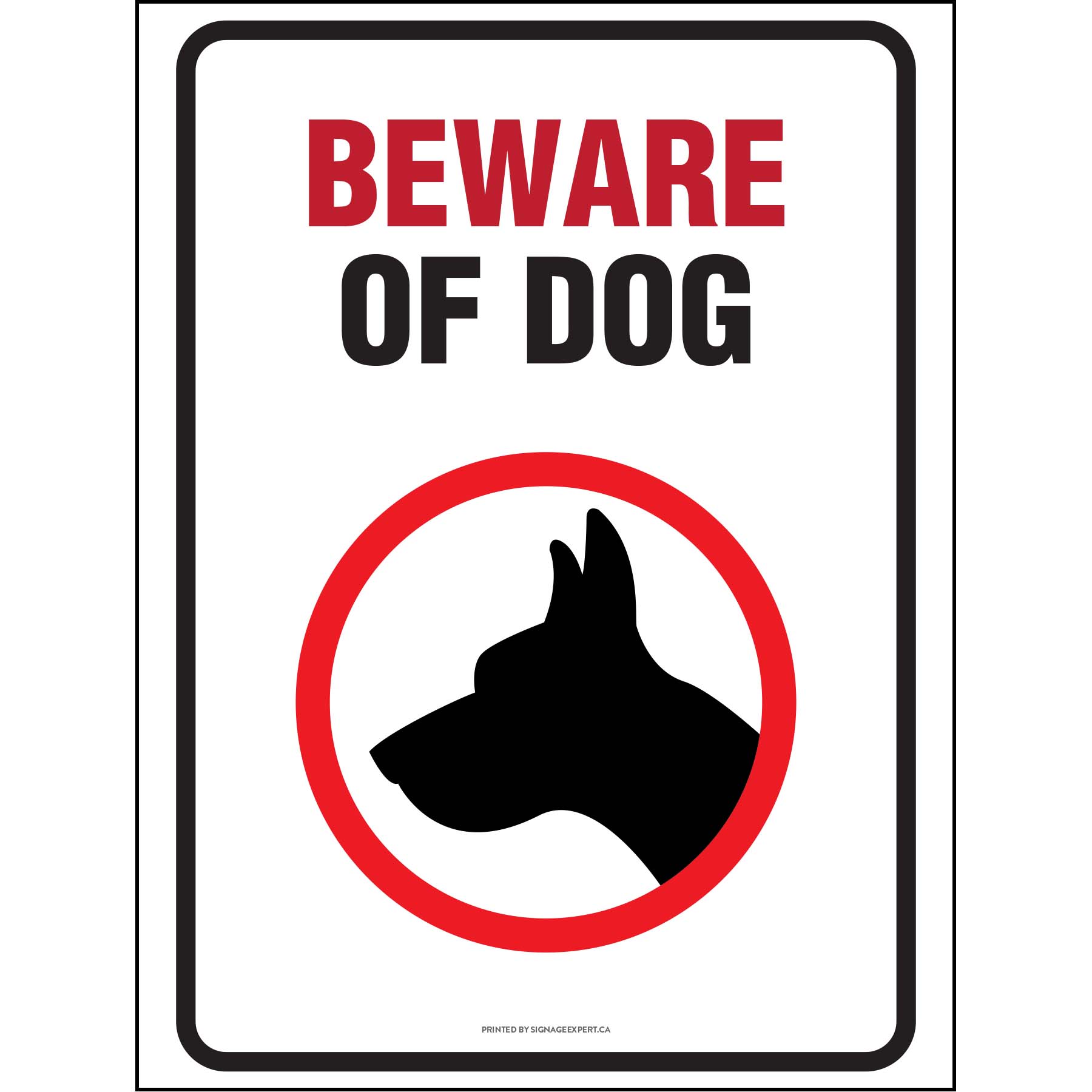 The "Beware of Dog" sign warns individuals that a dog is present within a given perimeter. Used in domestic, public and workplace settings, this sign alerts the public of the potential of contact with a dog and prepares them for the health and safety risks associated with it.