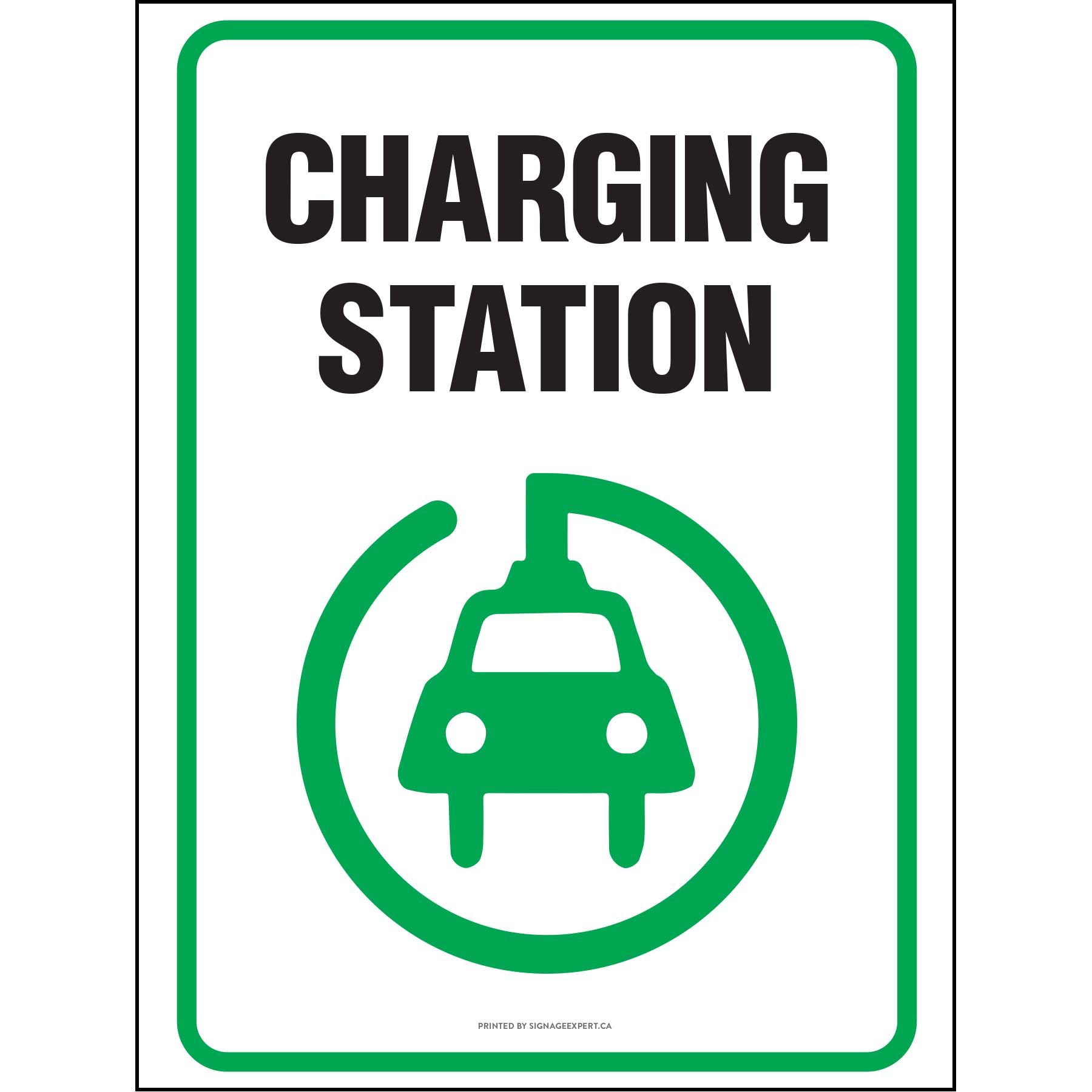 The sign is best displayed near charging stations and in workplaces and commercial spaces where charging stations are present to serve as a n indicator that there are some in close proximity.