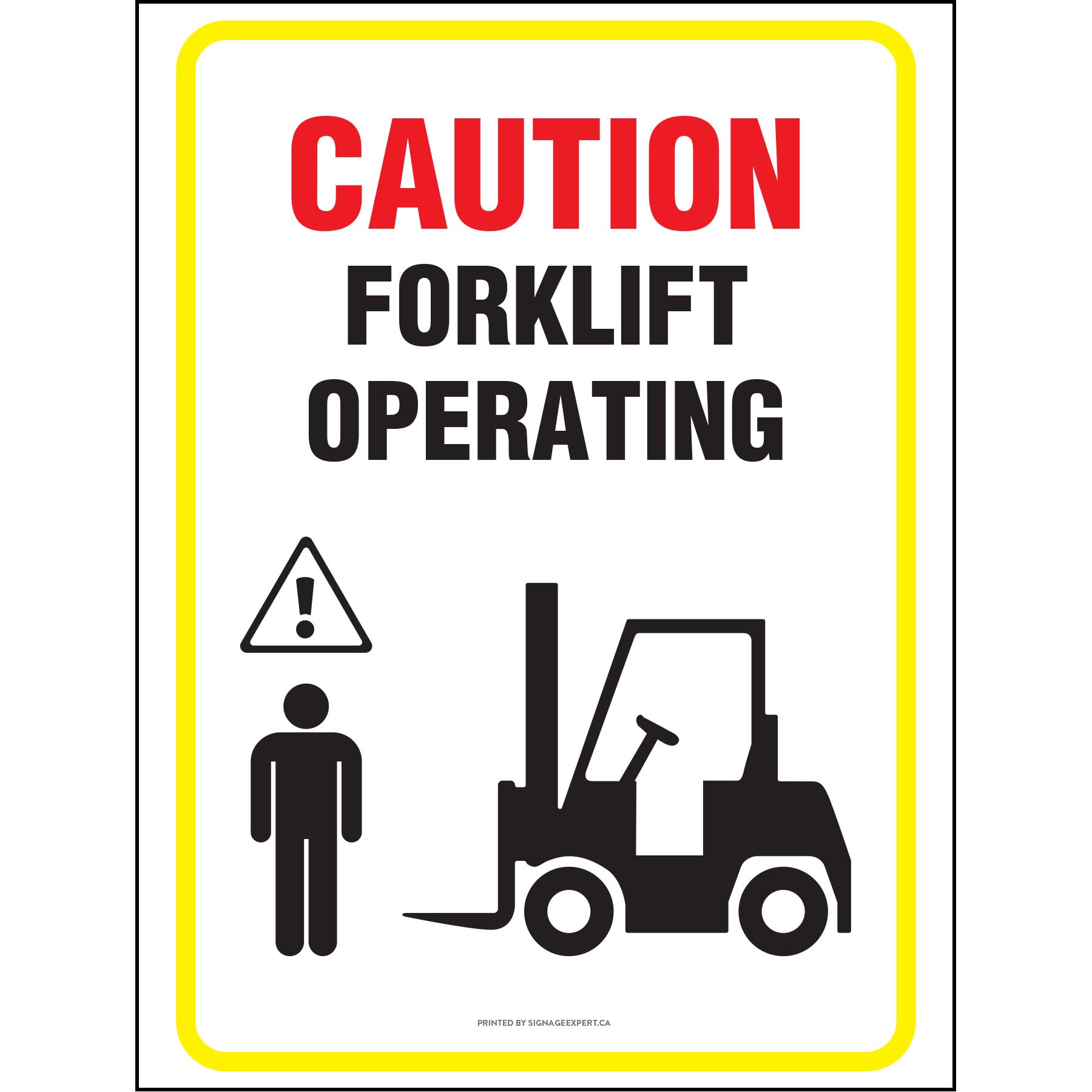 The "Forklift in Motion" sign ensures individual and employee awareness and alertness in the workplace. It keeps up good health and safety practices by telling employees to remain cautious when operating and moving around spaces with forklifts present.