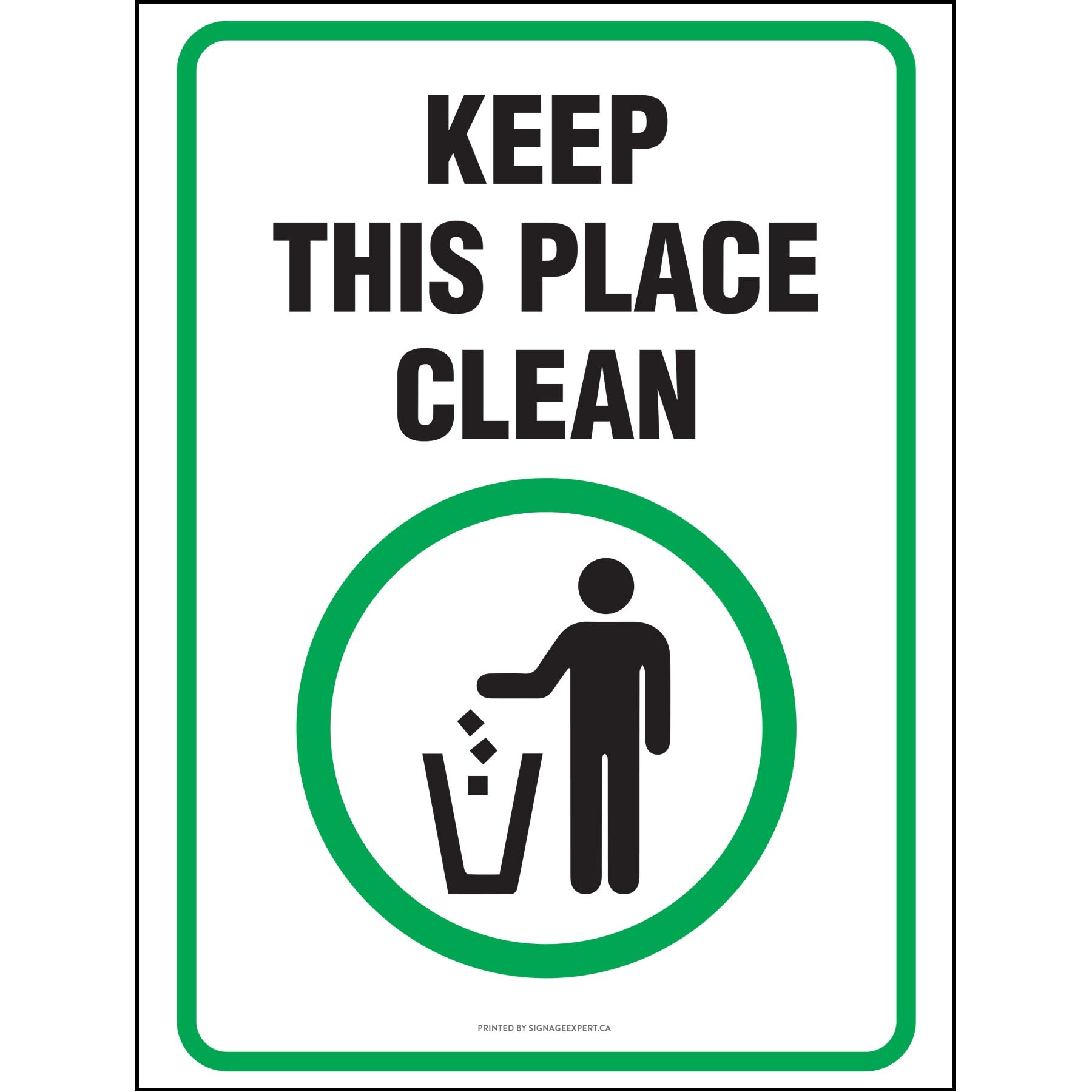 This sign Keep this place clean is perfect for displaying in a public place like a bike path or in a park. Nothing like awareness to keep our environment clean.