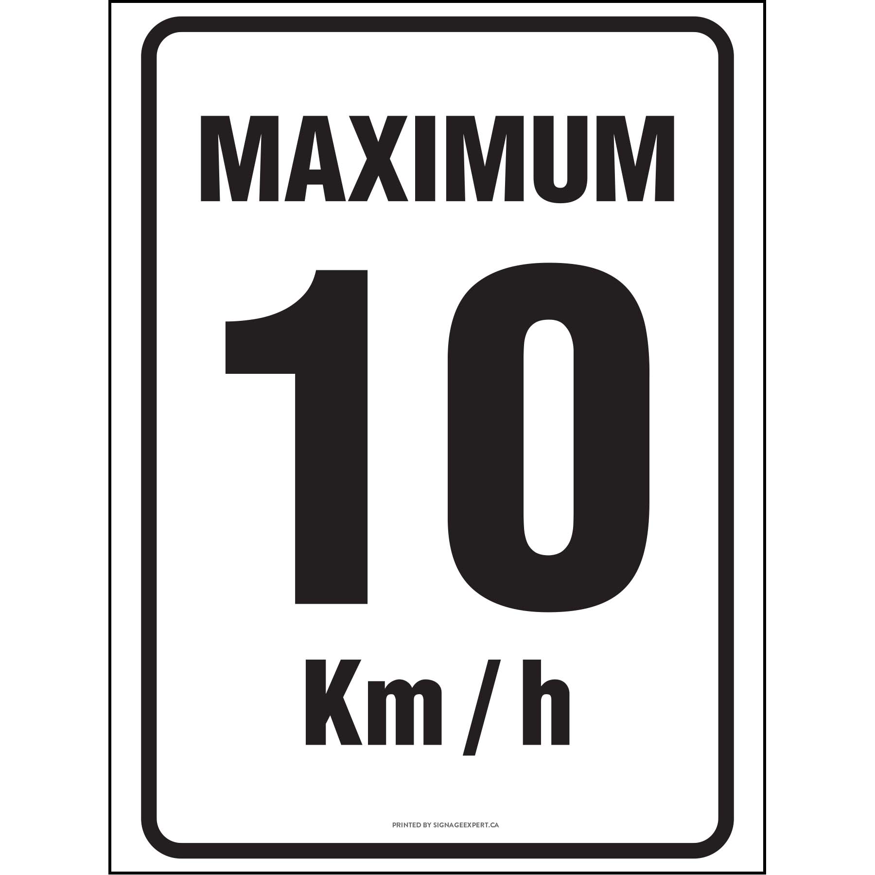 The "Maximum 10 km/h" sign is a standard traffic sign that identifies the top speeds allowed to be reached in a given area. With large digits, it ensures the maximum is highly visible to the individual and helps them to respect the traffic laws and allowed speeds.