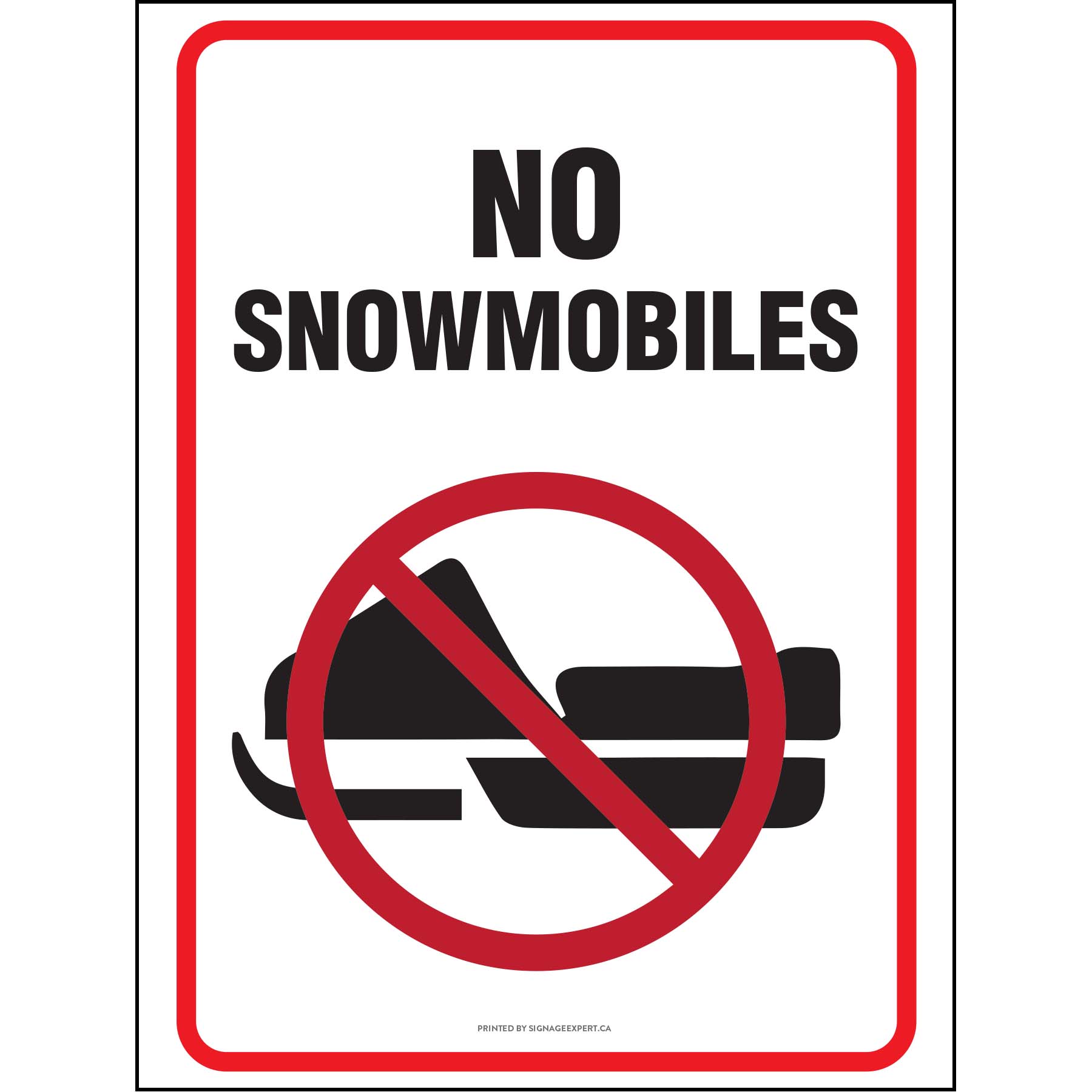 The "No Snowmobiles Allowed" sign advises individuals that the presence of snowmobiles in the given area or environment is prohibited and therefore cannot be driven beyond the given point. The sign pictures a barred-off snowmobile to allow for visual representation that bicycles are not allowed.