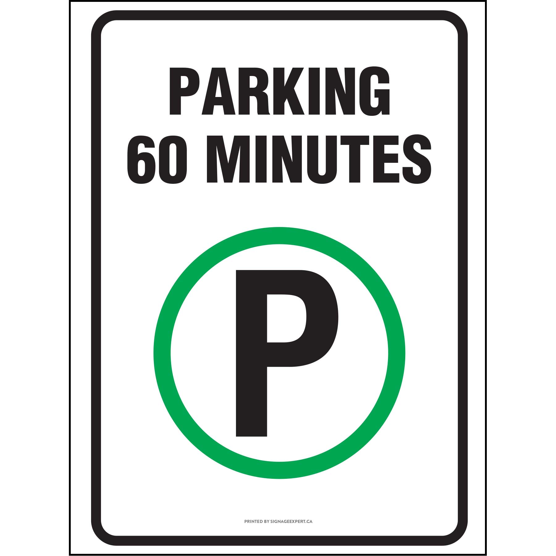 The sign is best displayed next to the roadside or in the lot where parking with a maximum of 60 minutes is indicated. The height of the sign should be visible to those in cars.