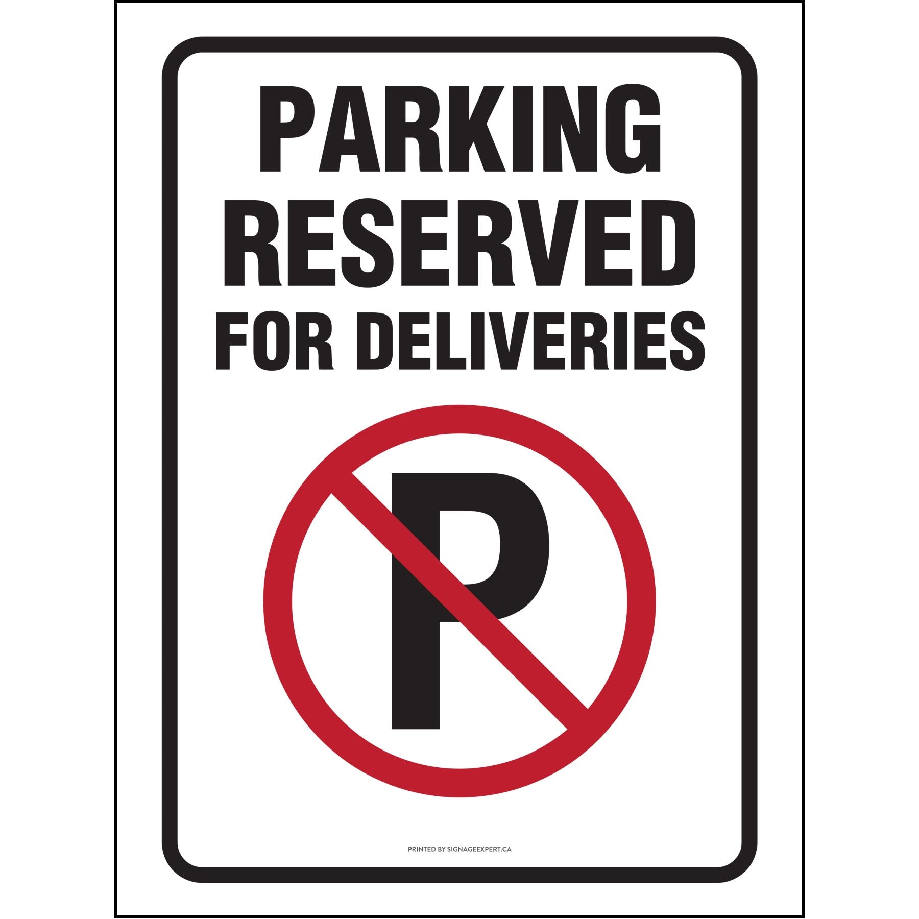 This Parking Reserved for Deliveries sign is a standard parking sign that is widely recognizable and identifiable. It notifies drivers that certain parking areas require specific authorization, be that they are vehicles fulfilling deliveries.