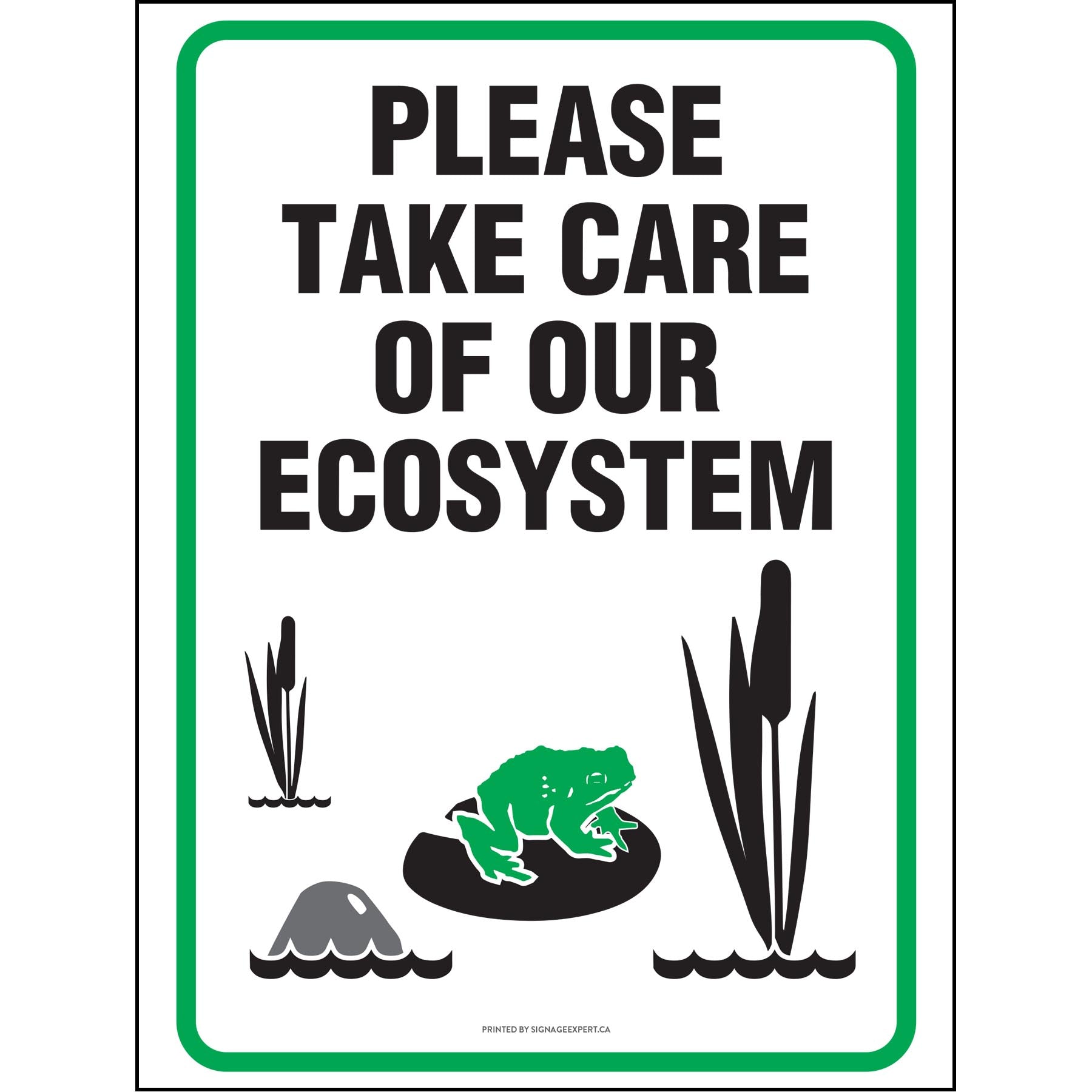 This sign Take Care of our ecosystem is perfect for displaying in a public place like a bike path or in a park. Nothing like awareness to keep our environment clean.