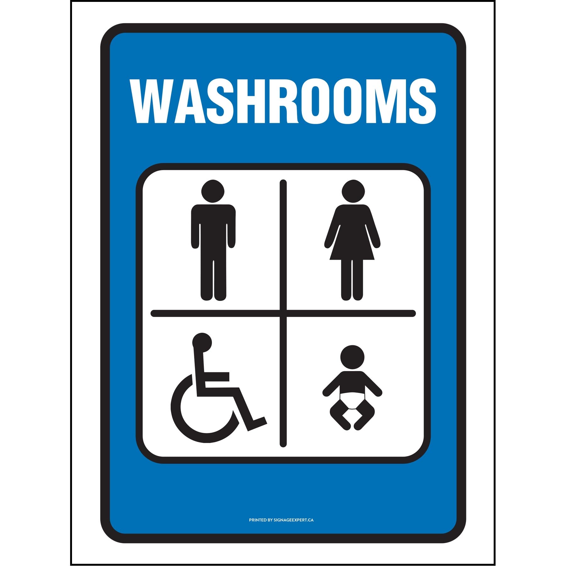 This sign Washrooms is perfect for displaying in a private or public place.